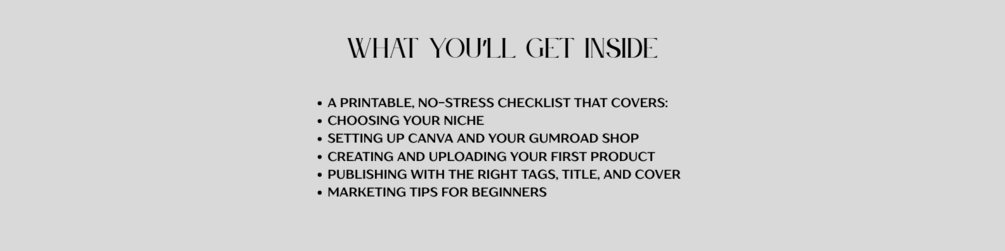 Let’s keep it simple. The Gumroad Starter Checklist gives you a clear, step-by-step roadmap so you never get stuck wondering, “What do I do next?”